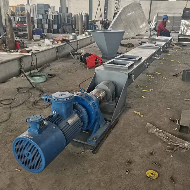 客戶定制螺旋輸送機生產(chǎn)制作完成,聚氨酯內(nèi)襯,防爆變頻電機,一體成型螺旋葉片。